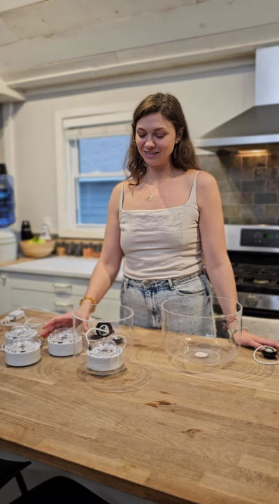 There are many creative ways to use the Musical Mushrooms® in a performance. Whether they are used to simply drive one or two automatic drone notes in the background to accompany you while you play your key bowls manually. You can automate all your bowls and play them using your hands. You can connect two Musical Mushrooms® to a single bowl to independently control the main frequency as well as the overtone (two tones in one bowl). You can control your bowls while sitting or standing. You can distribute your bowls across your audience and travel between them while playing other instruments. The sky's the limit! We are excited to see what creative uses our users will come up with!!